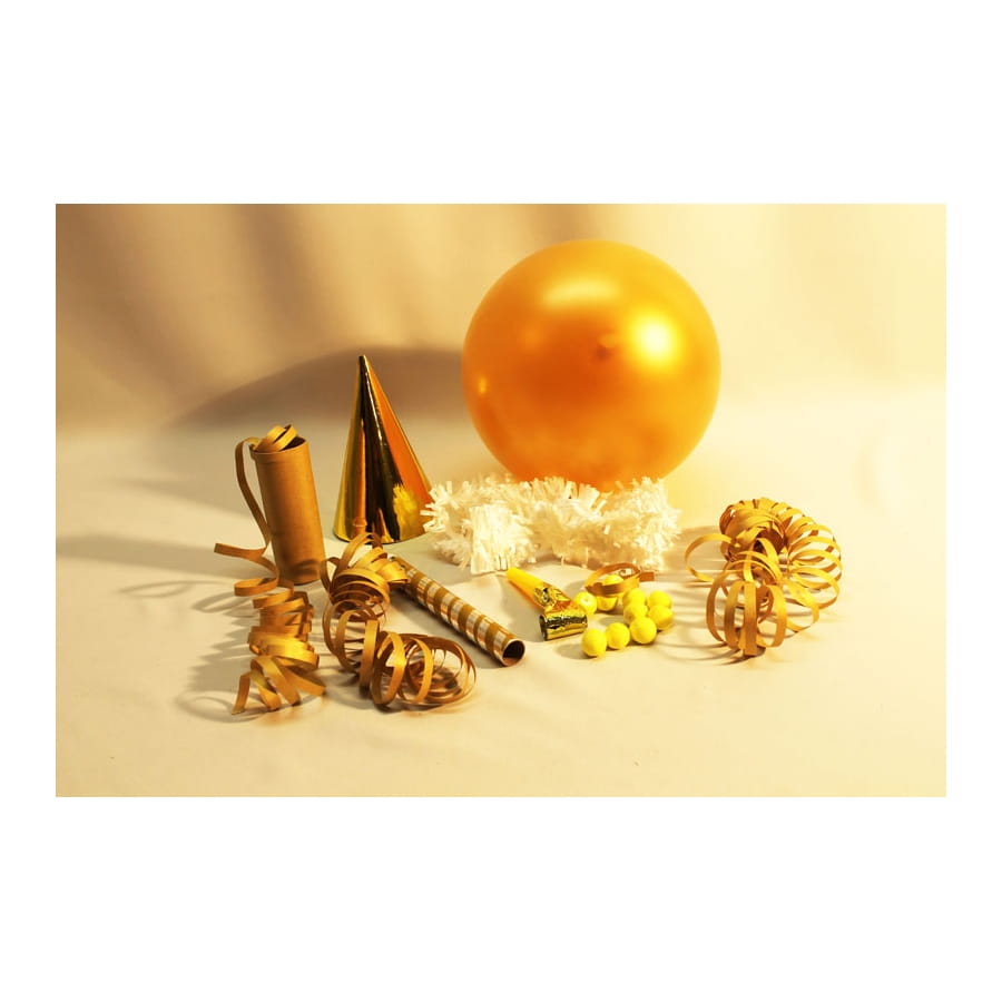 Ce lot contient un assortiment d'accessoires de cotillon dorés à effet métallisé pour une personne.