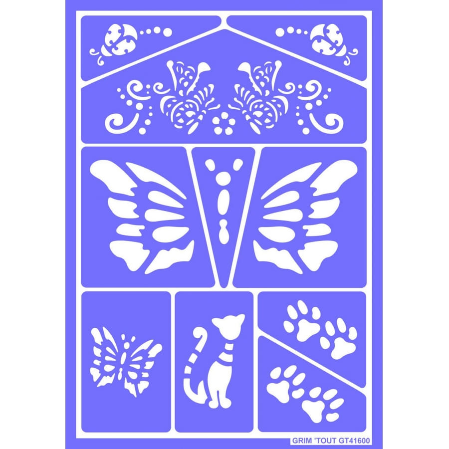 Vous en aurez la capacité si vous utilisez ce pochoir de maquillage chats et papillons.