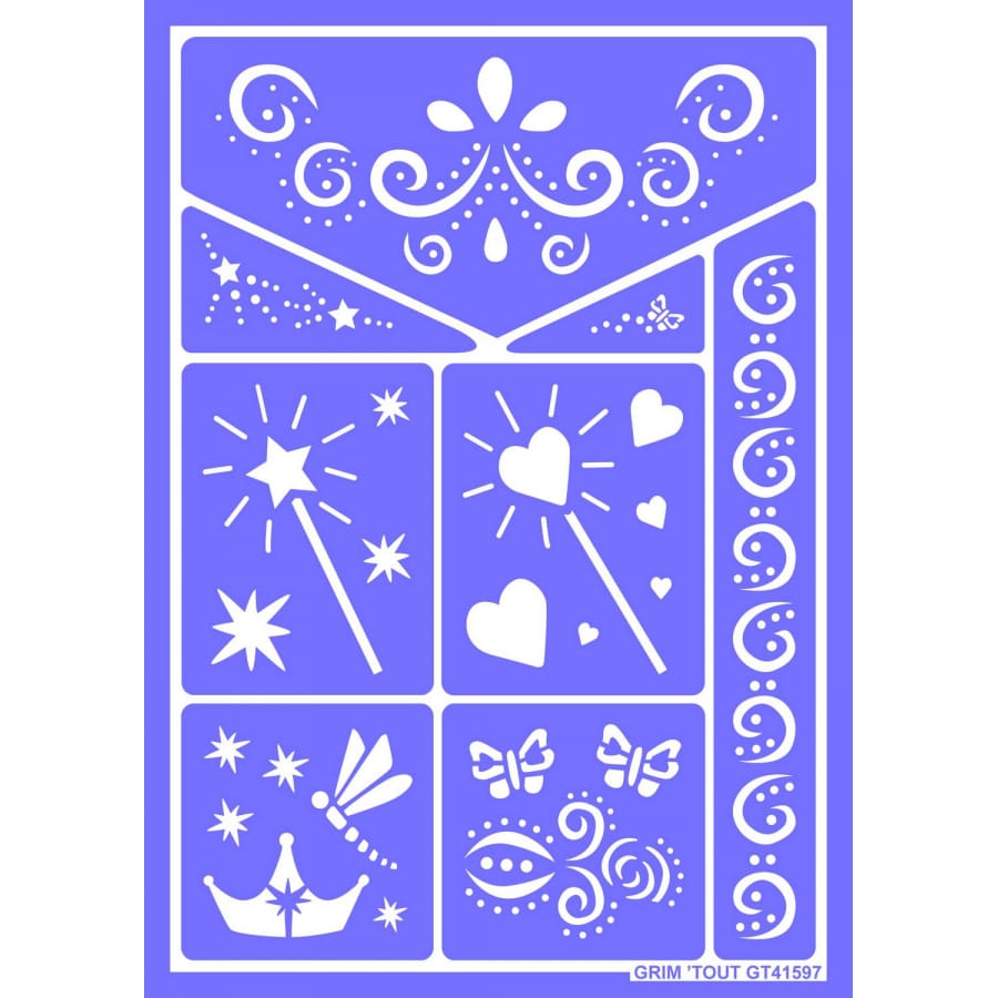 Ce pochoir de maquillage fées et princesses est à la fois lavable, réutilisable et adhésif.