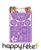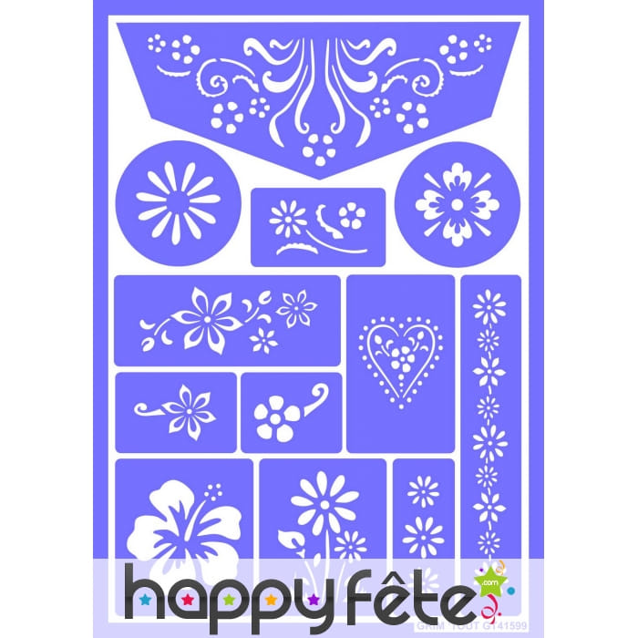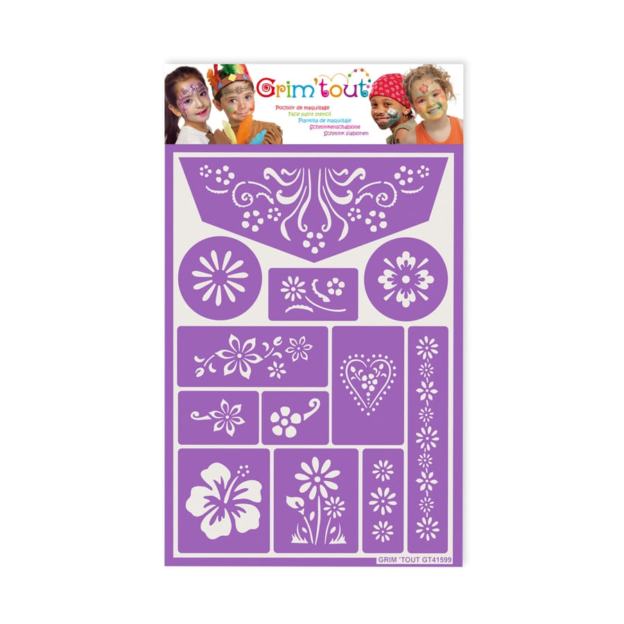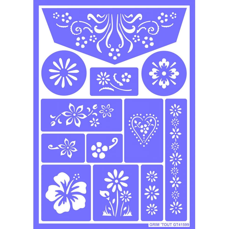 Ce pochoir de maquillage Fleurs de Grim'tout compte plusieurs motifs à fleurs.