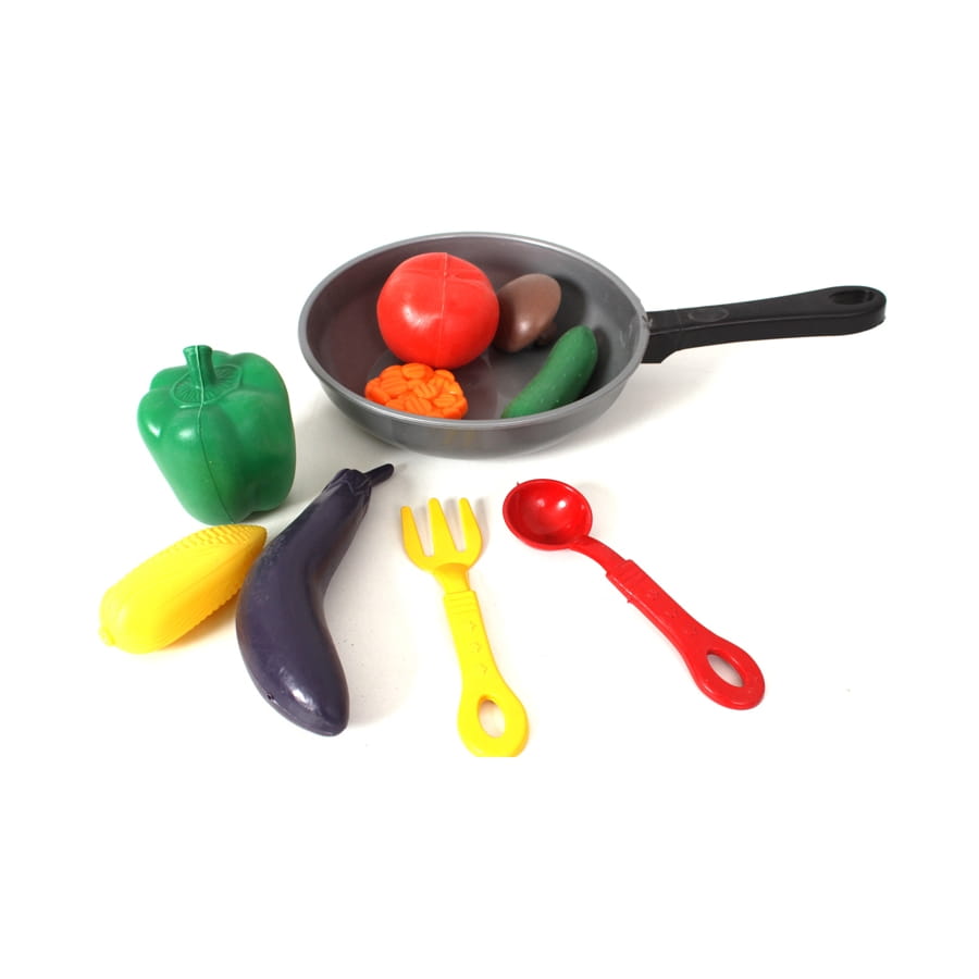 Initiez vos enfants à l'art culinaire ! Optez pour cet ensemble poêle, légumes et couverts pour leur faire découvrir la manière de cuisiner. Eh oui, les bons plats n'arrivent pas sur les assiettes par hasard ! Ils disposeront ainsi d'une poêle, de légumes colorés et de couverts de table. Le tout fait 30 x 18 cm de dimension. Les légumes peuvent varier selon l’état du stock, c'est pourquoi il ne vous sera pas possible de choisir la couleur ou le modèle à la commande.