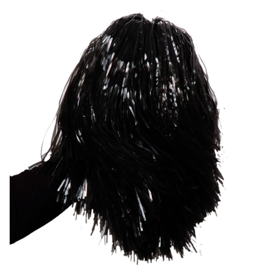 Pom-pom raphia entièrement noir et en nylon. Cet accessoire mesure 45 centimètres. Il est idéal pour compléter un uniforme de Pom Pom girl.