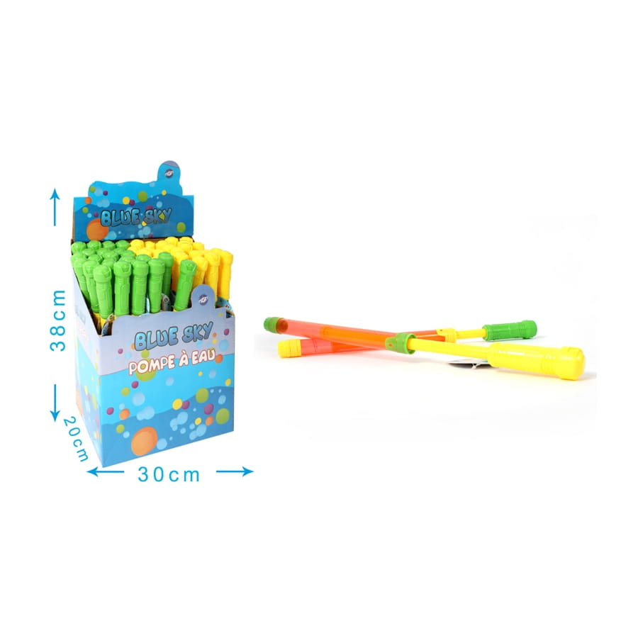 Etes-vous prêts pour des moments de délire ? Les enfants vont adorer cette pompe à eau de 38 cm de dimension. L'article est fraîchement coloré et très facile à utiliser. Vendue à l'unité, cette pompe à eau existe en plusieurs coloris différents mais vous n'aurez pas le choix de la couleur à la commande.