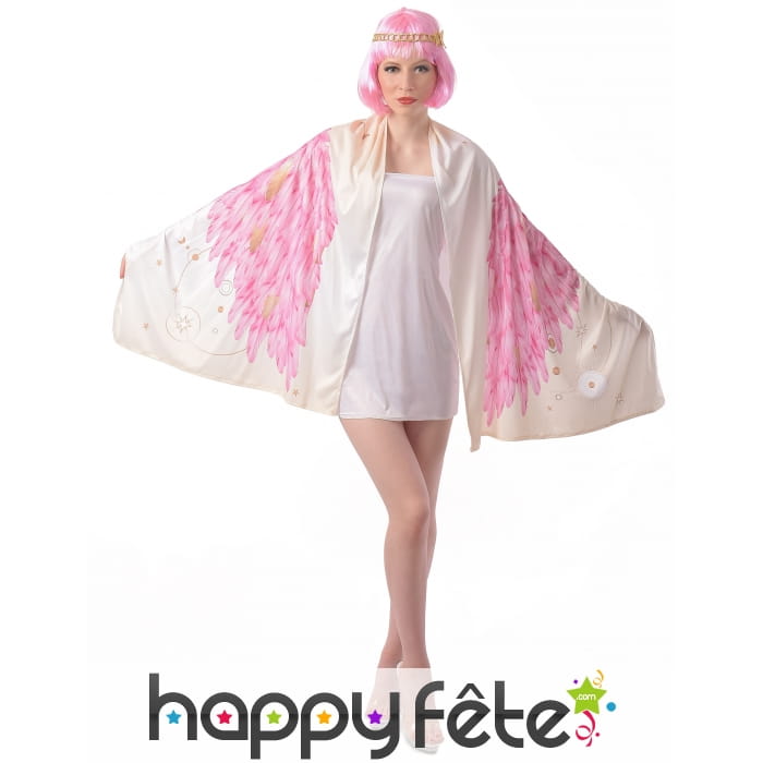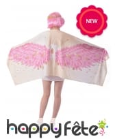 La cape ressemble à un poncho et est marquée de 2 ailes roses déployées.