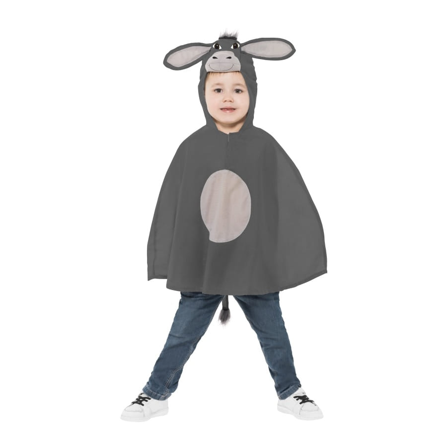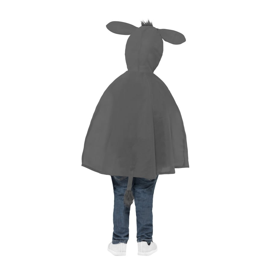Ce poncho âne tient en une seule pièce. La capuche imite une jolie petite tête d'âne aux grandes oreilles. Les deux coloris dont il est composé sont le gris clair et le gris foncé. Cet accessoire s'enfile très facilement, idéal donc si vous souhaitez rapidement déguiser votre enfant. Choisissez la taille M pour les enfants de 7 à 9 ans et la taille S pour les enfants de 4 à 6 ans. Nous conseillons de laver ce déguisement au nettoyage à sec. Consultez l'étiquette pour de plus amples informations.