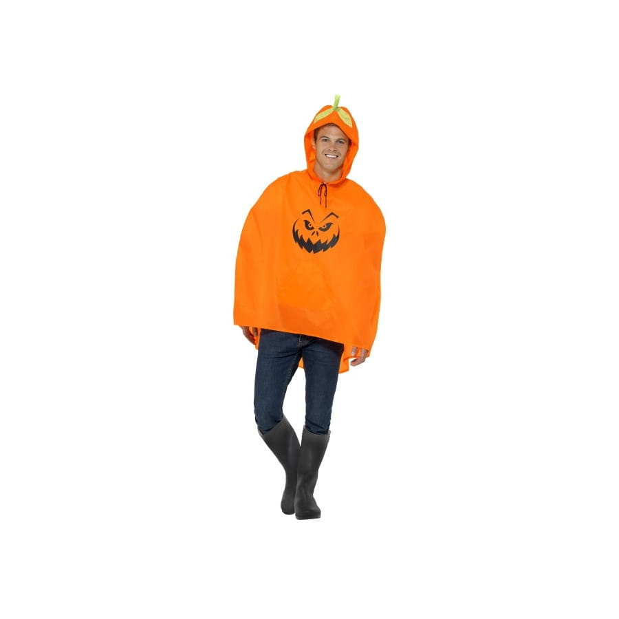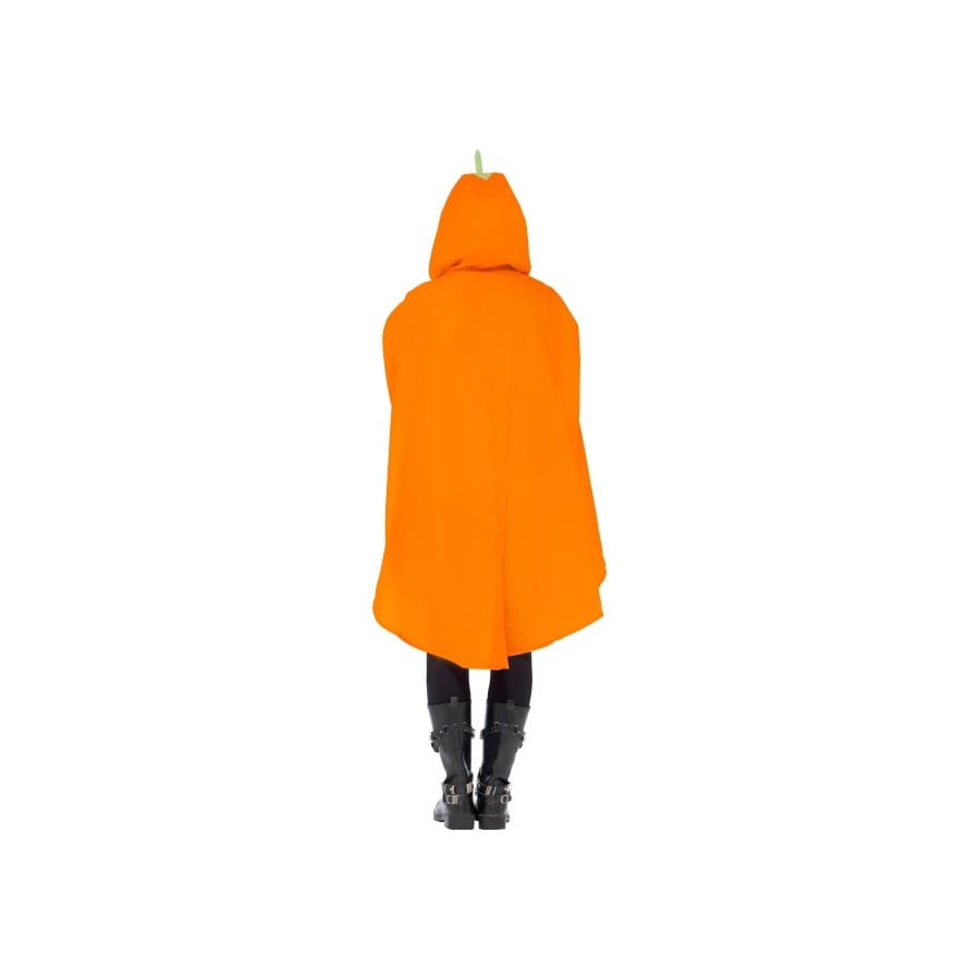Voici un poncho pour adulte, qui n'est pas comme les autres ! On l'appelle « poncho citrouille ». Il est imperméable, de couleur orange, avec le visage d'une citrouille en colère, imprimé en noir sur le devant. Il possède aussi une capuche intégrée avec lacet de resserrage, et une tige et des feuilles vertes sont floquées au-dessus, pour mieux représenter l'aspect d'une citrouille. Ce poncho est parfaitement adapté à des fêtes déguisées à thème «fruits» ou «légumes», ou bien pour amuser les enfants pendant une soirée Halloween en famille. Plus besoins de sculpter les citrouilles, car vous paraîtrez déjà comme un vrai Jack-O -Lanterne vivant.