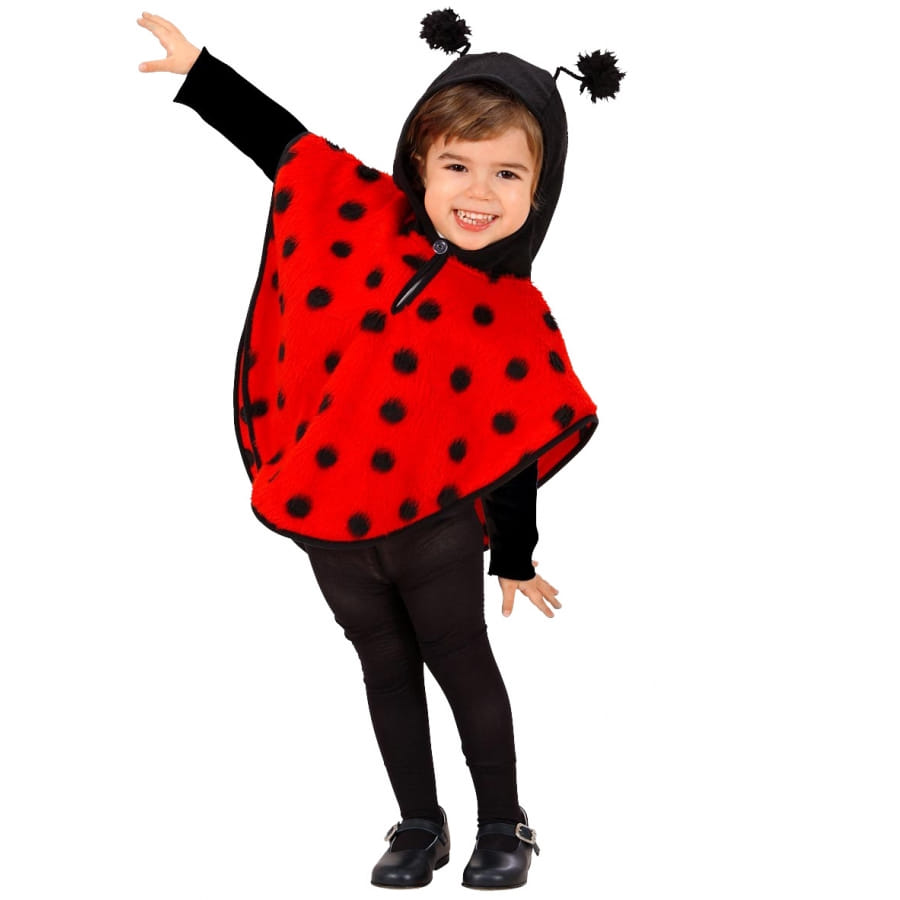 Envole-toi petite coccinelle ! Quand votre boutchou se prépare pour son tout premier carnaval, il ne veut qu'une chose : un beau déguisement. Inspirez-vous d'un insecte porte-bonheur pour habiller votre petit ange. Ce poncho coccinelle avec capuche, pour enfant est à la fois mignon et pratique. Il est de couleur rouge et parsemé de pois noirs. Au niveau du cou se trouve un bouton de fermeture. Aussi, la capuche est équipée de deux petites antennes à pompons noirs pour une allure adorable. Vous pouvez accompagner l'article de vêtements de couleur noire comme sur la photo pour obtenir un déguisement intégral. Le modèle proposé est disponible en plusieurs tailles différentes correspondant aux enfants âgés de 1 an à 4 ans.