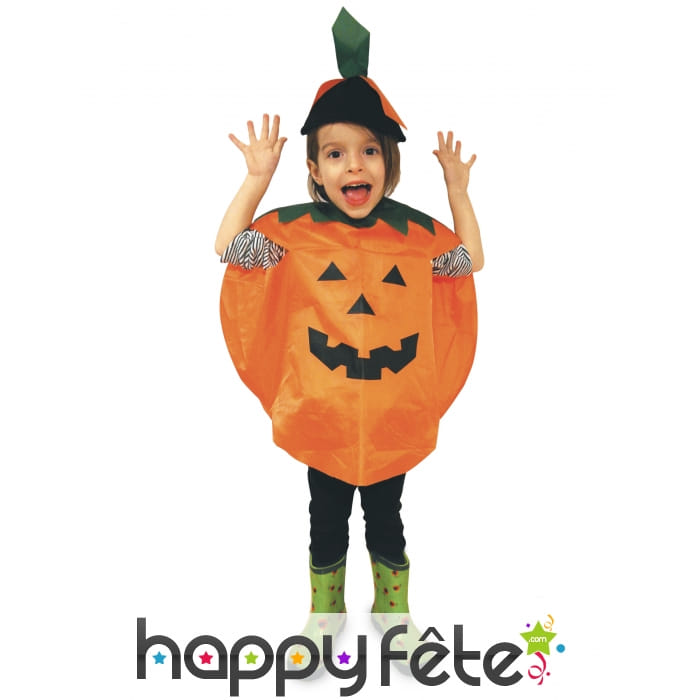 Vous adorerez le poncho de citrouille avec chapeau, pour enfant.