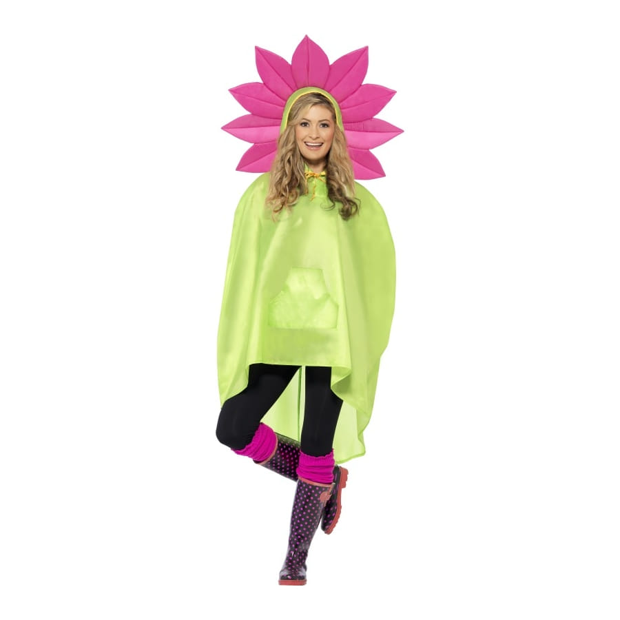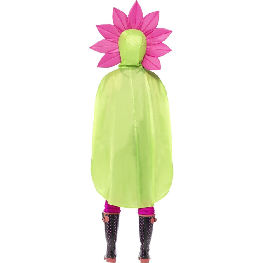 Il est original ce poncho en forme de fleur que vous pourriez porter sous la pluie. En effet, il est imperméable et possède également une capuche. Sa capuche est ornée de pétales de fleurs de couleur rose et le reste du poncho est vert. Il est également muni d'une pochette avec cordon. Mesdames et Messieurs, faites savoir à tout le monde que vous êtes en osmose avec la nature en osant porter ce poncho dans la rue! La taille disponible est une taille unique et standard.