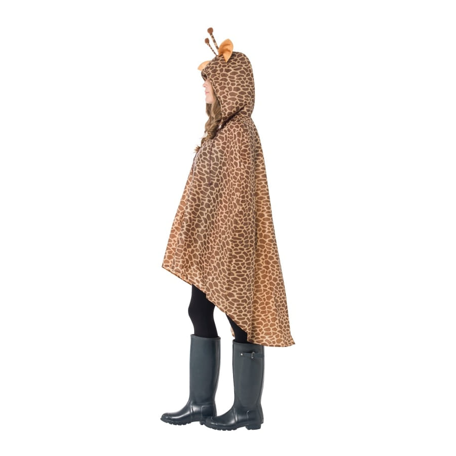 Vous n'avez peut-être pas son long cou, mais vous avez assurément sa couleur de peau ! Vous allez incarnez une belle girafe des savanes africaines avec ce poncho beige tacheté de marron. Vous disposerez même d'une capuche avec des oreilles et des cornes. Ce poncho est imperméable, et est doté d'un sac à cordons. Il est proposé en taille unique, pour homme ou femme.