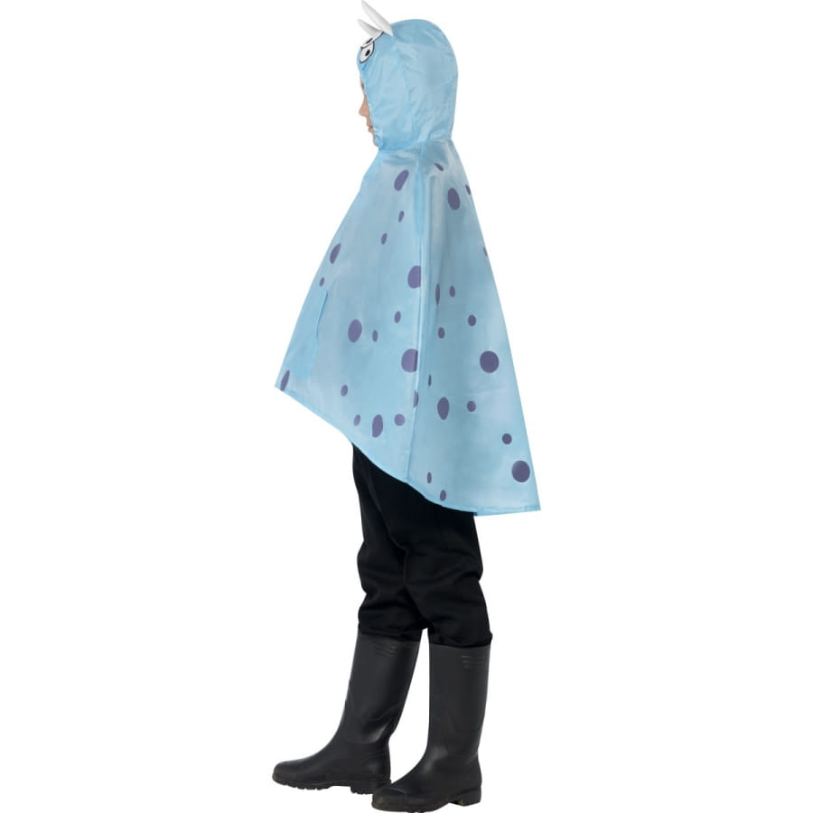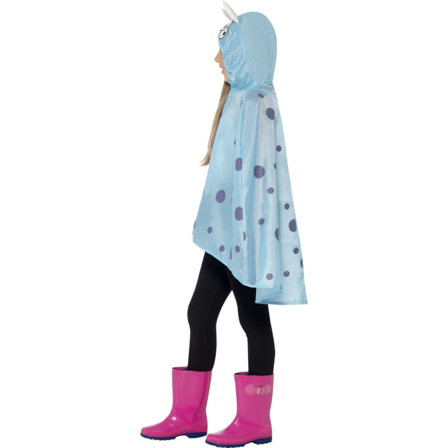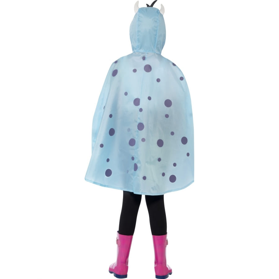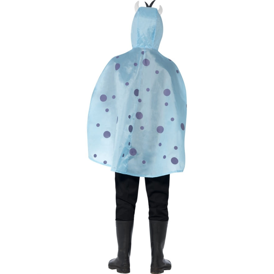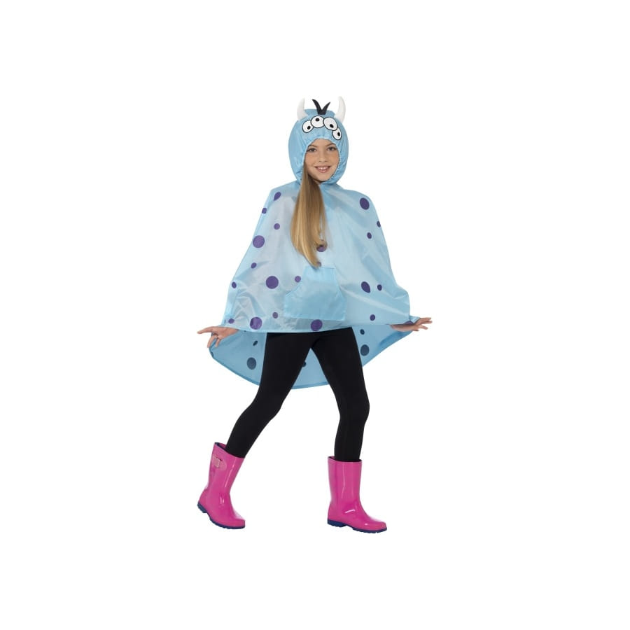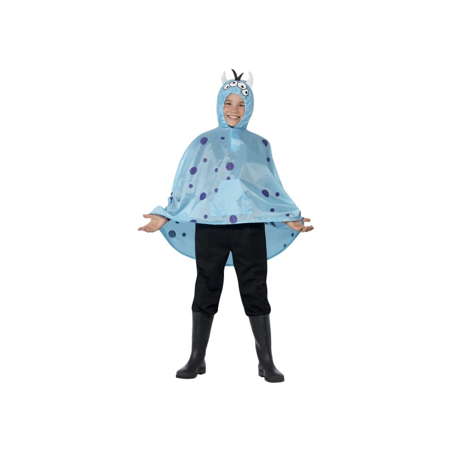 Lors d'Halloween, s'il risque de pleuvoir, ne vous inquiétez surtout pas, le déguisement de votre enfant ne sera pas gâché, vous pourriez rajouter tout simplement ce poncho monstre imperméable pour enfant. De couleur bleue avec des pois d'un bleu plus foncé, ce poncho à capuche représente un monstre à 4 yeux et des cornes. Les petites filles et petits garçons de 7 à 12 ans et 4 à 7 ans pourront trouver un poncho de leur taille.