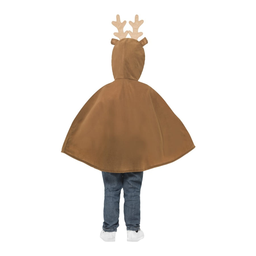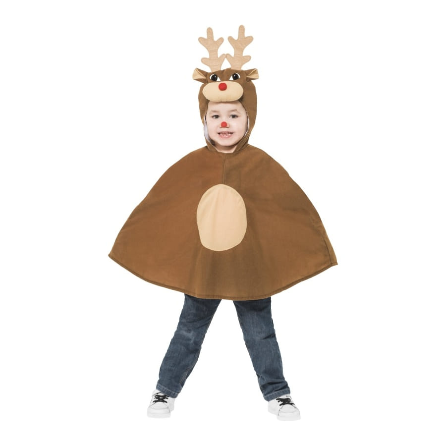 Enfilez ce poncho à votre enfant et vous le transformerez en un adorable petit renne de noël. Le poncho s'enfile par le dessus. La capuche est intégrée au poncho et est décorée d'un petit nez rouge, d'une paire de corne et de deux petites oreilles. Un déguisement de noël à ne pas rater. Décliné en deux tailles : Le S (4 à 6 ans) et le M (7 à 9 ans). consigne de lavage : nettoyage à sec uniquement.