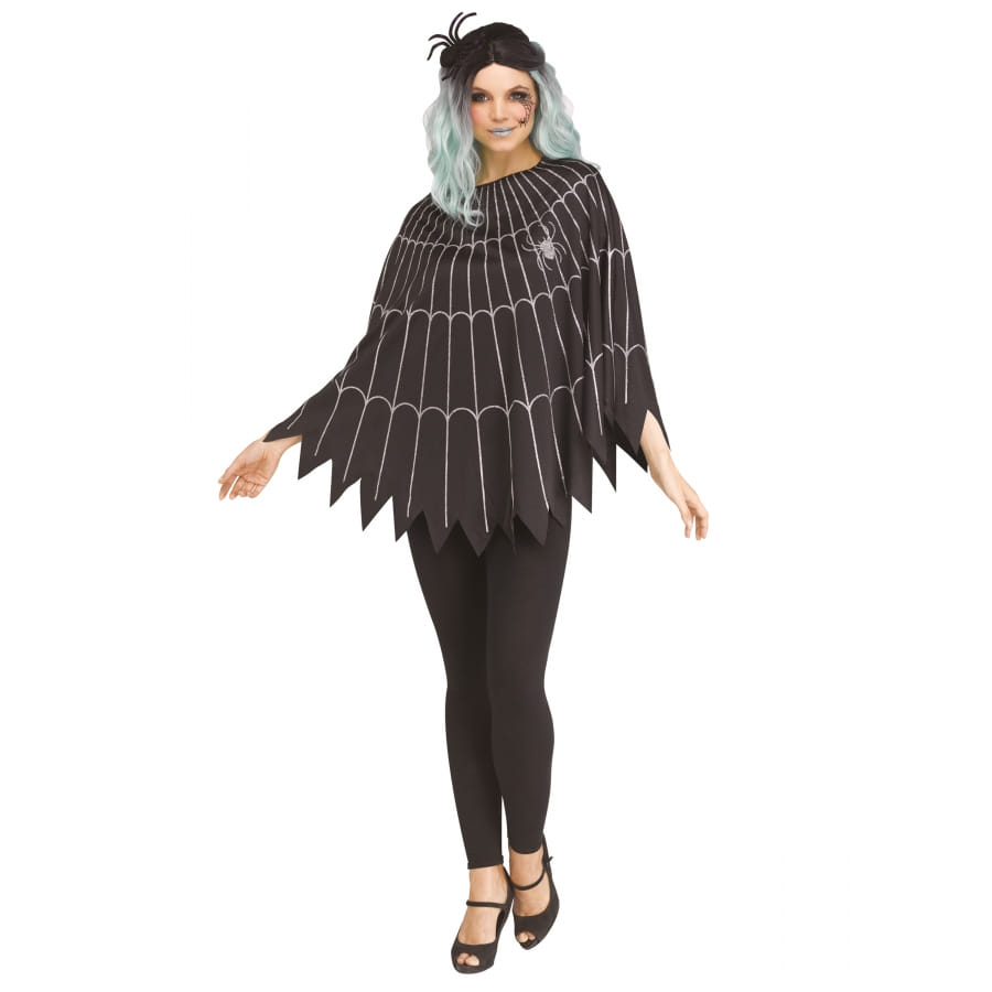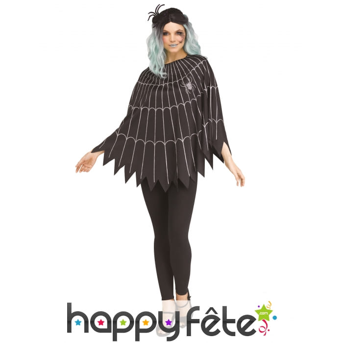 Ce poncho est de couleur noire et magnifiquement décorée d'une toile d'araignée couleur argent.