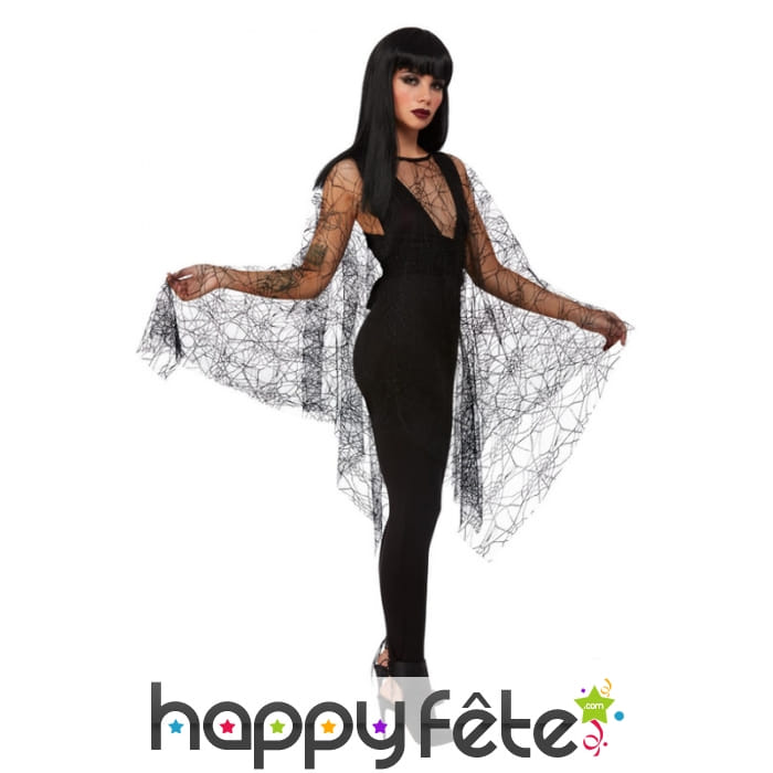 Ce poncho toile d'araignée noir pour femme, rehaussera à merveille le style gothique et macabre de votre déguisement de sorcière.