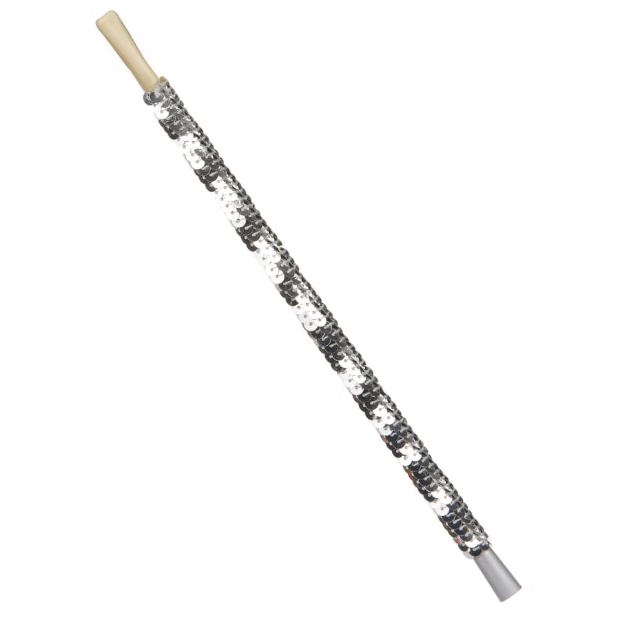 Le porte cigarette argenté recouvert de sequins est en plastique.