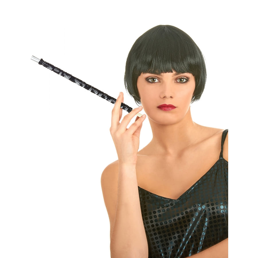 Les années Charleston vous passionnent ? Découvrez un accessoire de diva idéal pour faire la fête à la façon années 20-30. Il s'agit d'un porte cigarette noir à sequins magnifiquement décoré de paillettes noires. Parfait pour une soirée mondaine, ce porte cigarette complétera votre tenue du style grande dame de la haute société.