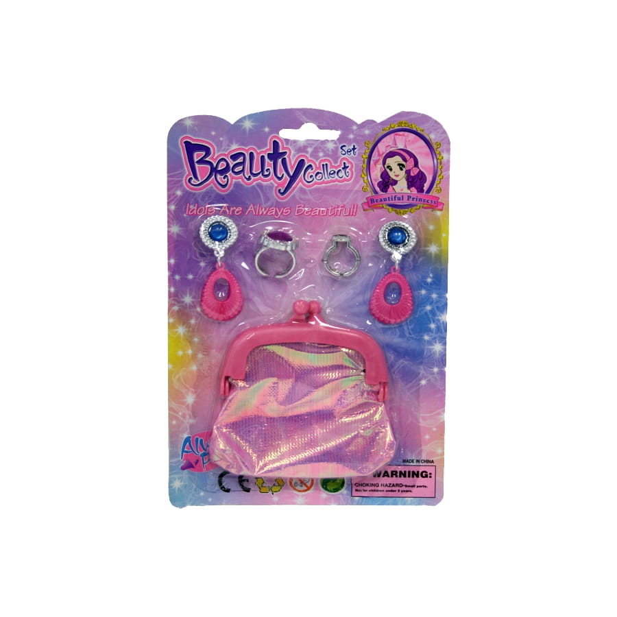 Ce porte monnaie irisé est idéale pour les petites princesse. Si elle se transforme en princesse pour le carnaval ou pour un gouter d'anniversaire. Cet accessoire ira très bien avec le reste de son déguisement. Le porte monnaie est irisé de couleur rose avec deux bagues argenté et une paire de boucles d'oreille.