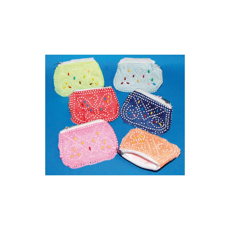 Petit porte-monnaie recouvert de perles. La taille de cet accessoire est de 9 sur 6.5 centimètres. Il vous est impossible de choisir ni le modèle ni la couleur du porte-monnaie. Vous recevrez un des modèles présentés. Offrez-le à votre fille pour qu'elle y mette son argent de poche.