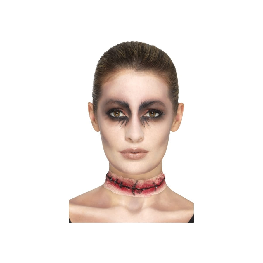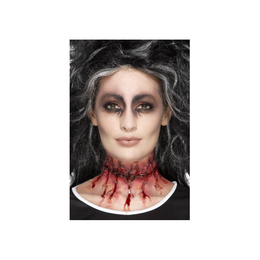 Que diriez-vous d'un cou tranché pour accompagner votre déguisement d'halloween ? Si cette idée vous tente, nous vous proposons le postiche de cou recousu en latex. Sa couleur rouge imite le caillot du sang. Totalement composé de latex, ce postiche se colle au niveau de votre gorge à l'aide d'un adhésif inclus. Avec ce cosmétique unisexe, vous ressemblerez à une victime de meurtre. Un scénario parfait pour la fête des morts !