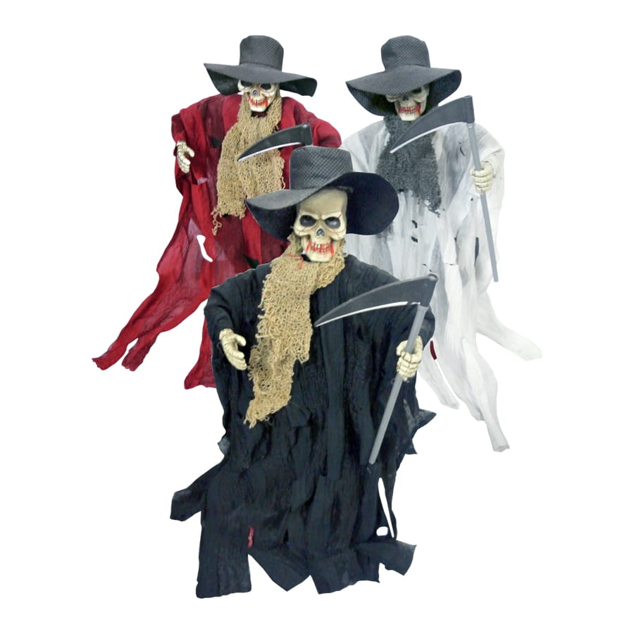 Offrez à vos invités une soirée inoubliable en ajoutant cette poupée de la Mort à votre décoration. Cet accessoire, vendu sans piles, ricane, monte et descend avec des yeux lumineux une fois activé. Il en existe 3 modèles, de couleur blanche, rouge et noire, mesurant 32 centimètres chacun. Il vous sera impossible de choisir la couleur ou le modèle lors de votre commane et vous recevrez un de ceux présentés.