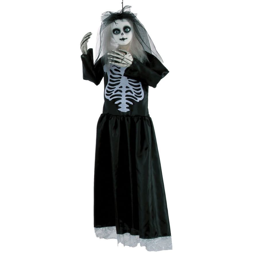 La poupée mariée squelette mesurant 91 cm est une décoration que vous pourrez suspendre à l'aide de ficelles.