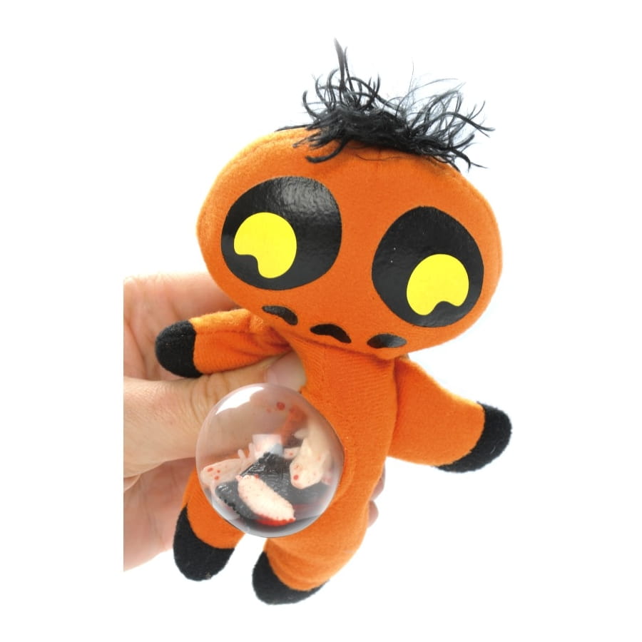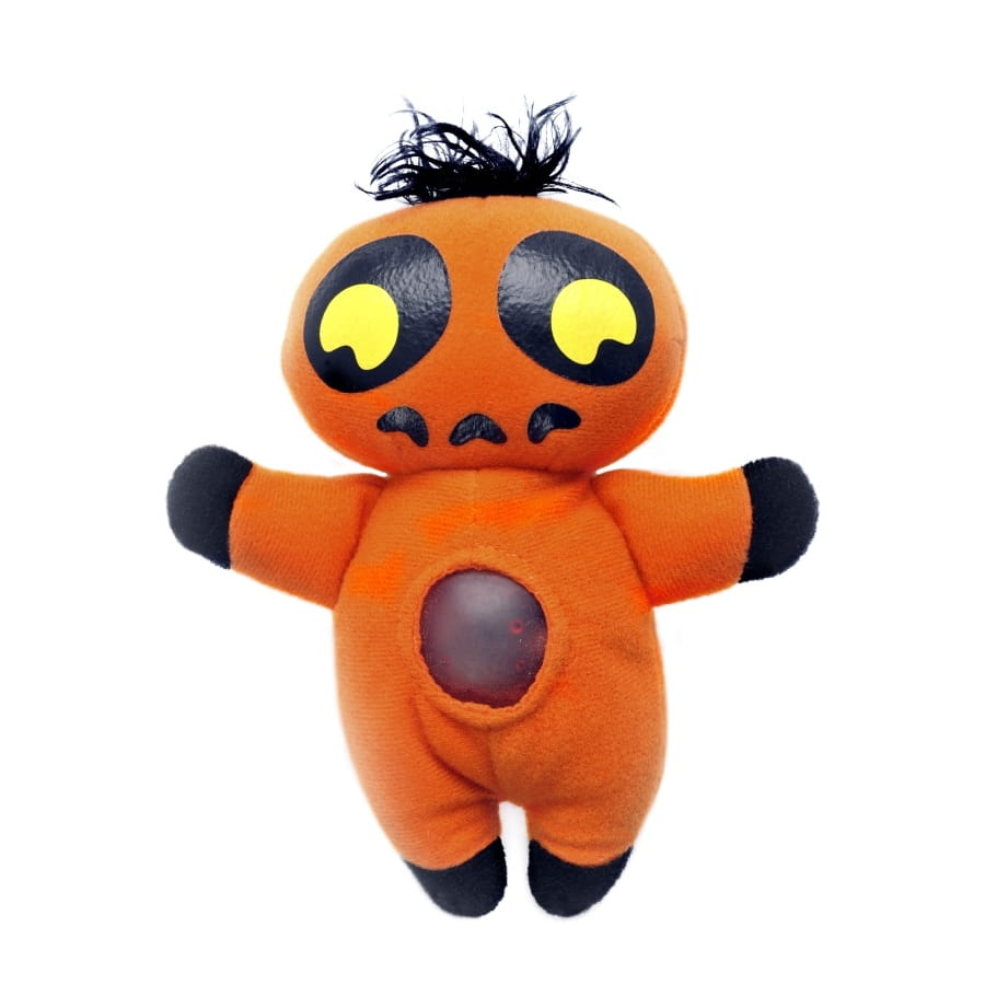 Poupée en forme de monstre citrouille de couleur orange, pour homme, femme, adolescent, adolescente ou enfant de plus de 3 ans. Pressez sur le ventre du monstre et regarder ressortir son ventre pour révéler tout son contenu. Cette poupée effrayante est idéale pour se détendre.