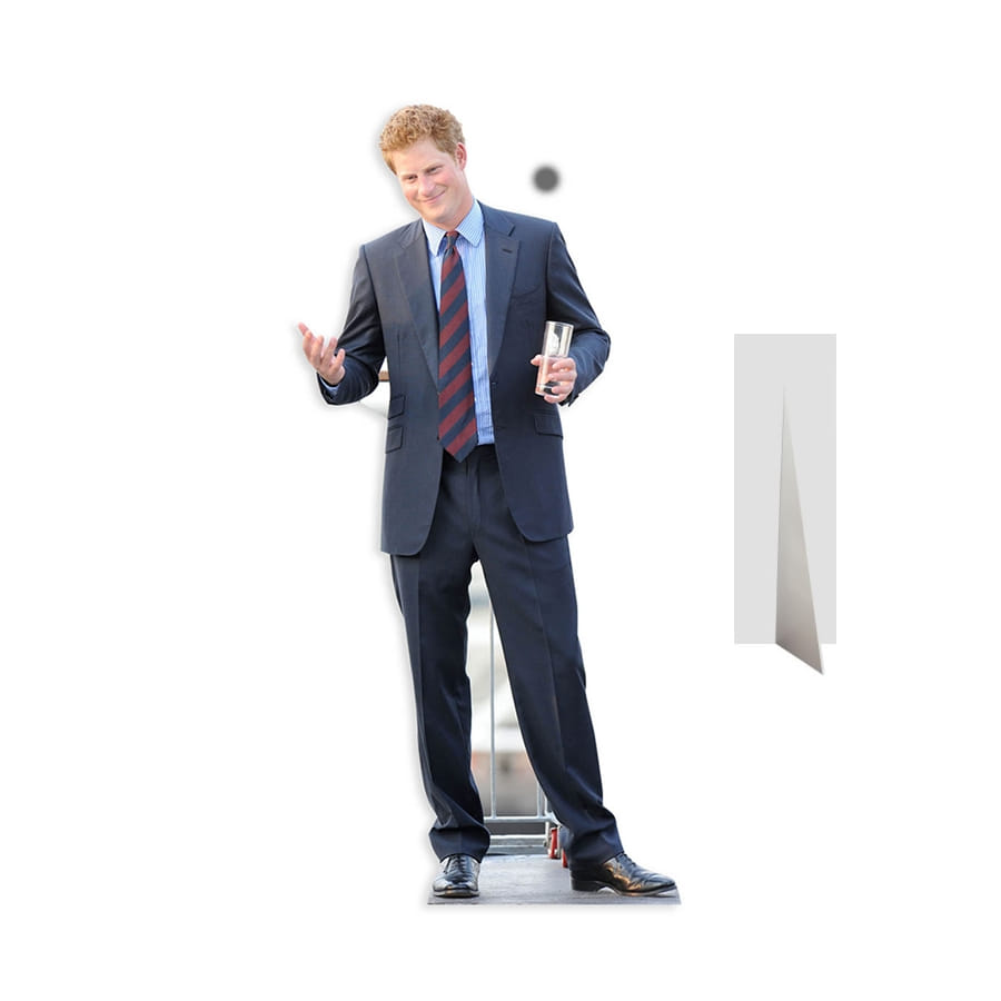 L'article Prince Harry taille réelle en carton plat est une silhouette en taille réelle du prince Harry ou encore Henry de Galles, un membre de la famille royale britannique. Fait en carton plat d'une hauteur de 185 cm, cette silhouette représente le jeune prince vêtu d'un beau costume bleu marine et d'une chemise bleu ciel.