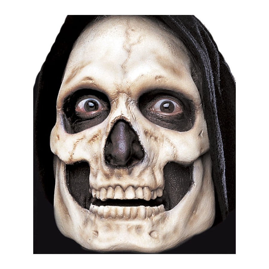 Quelquefois, un simple maquillage n'est pas suffisant pour un déguisement de squelette réussi, il vous faudra un masque qui s'intègre intégralement à votre visage comme cette prothèse visage de squelette. Elle est en mousse, entièrement de couleur blanche et n'attend plus que vous pour la maquiller, Elle est vendue non peinte et sans maquillage. Pour la mettre, il y a une petite astuce : commencez par coller la bouche, ensuite le contour des yeux, le front, les tempes, la lèvre supérieure, le menton, les joues et enfin la mâchoire, dans cet ordre précis.
