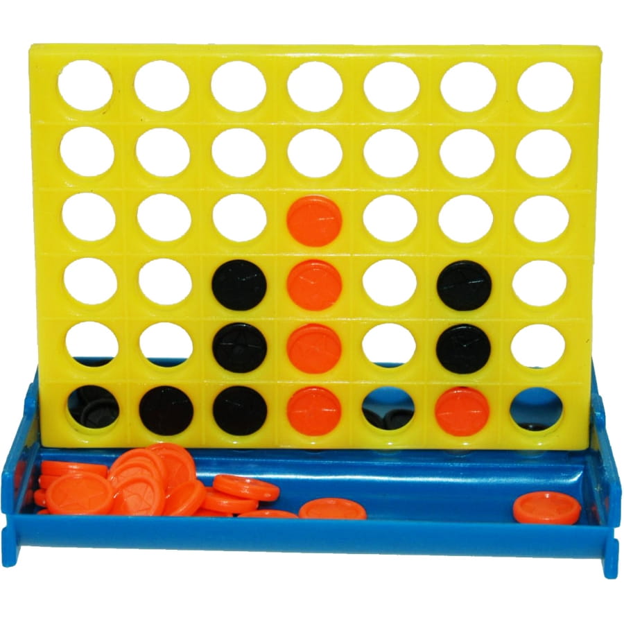 Jeu de Puissance 4 ou Stop 4 avec pions de couleur rouge et noire et grille jaune. Ce jeu mesure 5.5 centimètres de hauteur sur une largeur de 8 centimètres. Si vous n'y avez jamais joué, c'est le moment où jamais pour apprendre!