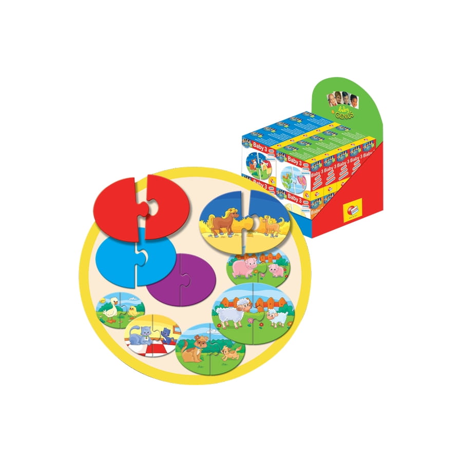 Puzzle de deux pièces pour bébé. Il vous sera impossible de choisir ni le modèle ni la couleur lors de la commande. Vous recevrez un des 4 modèles possibles. Votre enfant pourra s'amuser tout en apprenant à assembler ces pièces.