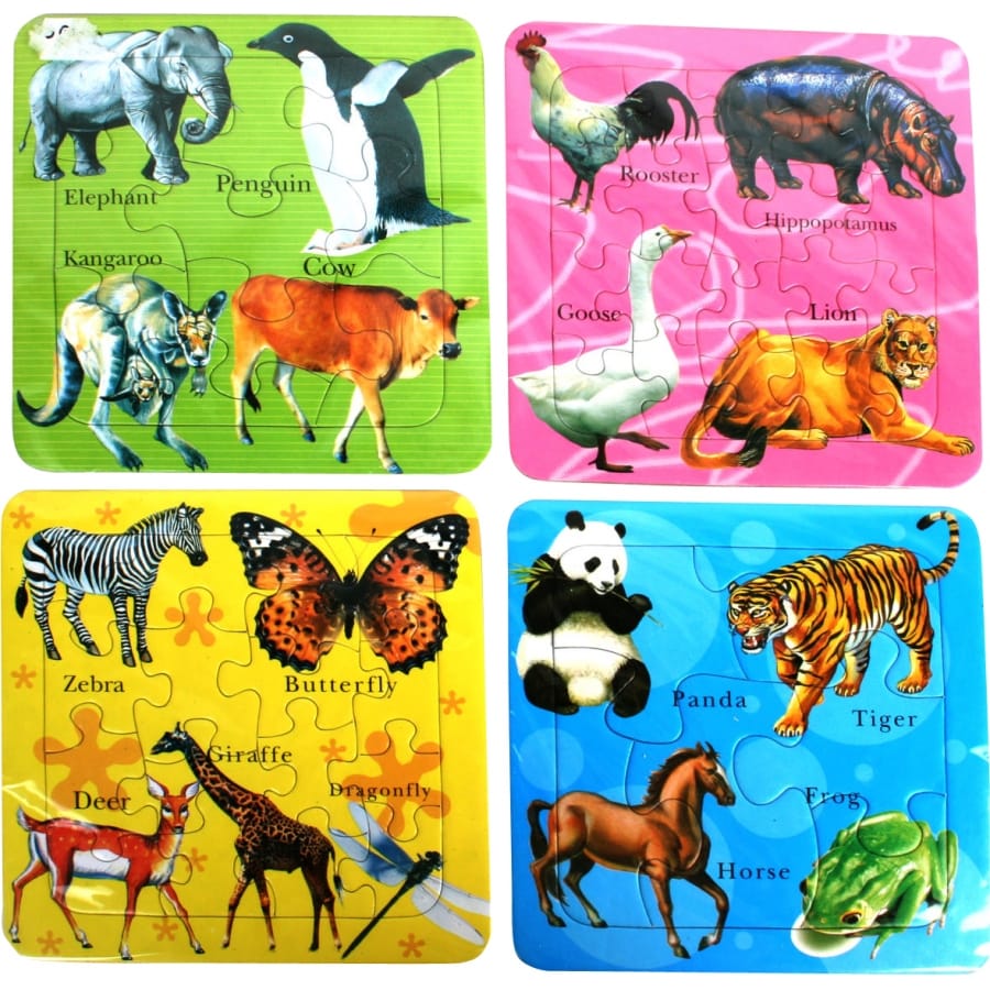 Puzzle en carton composé de 20 pièces et mesurant 14 centimètres carrés. Les puzzles sont basés sur un thème d'animaux. Il est impossible de choisir ni le modèle ni la couleur des puzzles. Un des modèles présentés vous sera livré. C'est un moyen parfait d'amuser vos enfants.