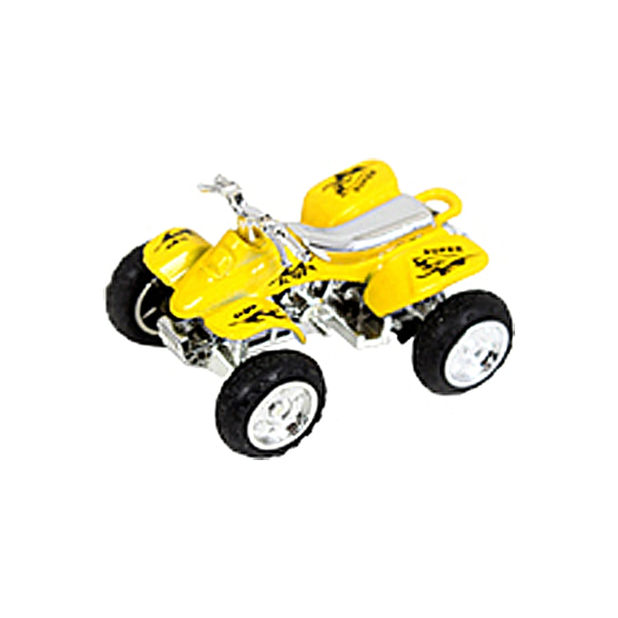 Un véritable petit véhicule tout-terrain est mis à son entière disposition ! Votre petit garçon va faire une longue route avec ce nouveau jouet. Offrez-lui ce superbe quad à rétrofriction métallique. Il est doté d'une apparence très sophistiquée et s'affiche en noir et en jaune. Nous vous conseillons également d'en faire un lot de kermesse, beaucoup se battront pour l'obtenir ! Notez que d'autres coloris existent mais le choix de la couleur est impossible lors de la commande.