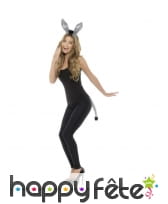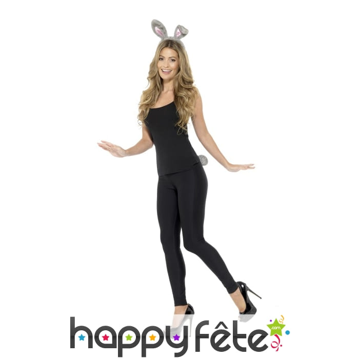 Pour Pâques ou à l'occasion d'une fête à thème animaux, laissez-vous tenter par un kit queue et oreilles de lapin gris sur serre-tête. Il vous suffira d'enfiler une tenue moulante pour mettre en valeur les accessoires. Vous disposerez d'un serre-tête à oreilles de lapin gris intégrés, et d'une petite queue assortie.