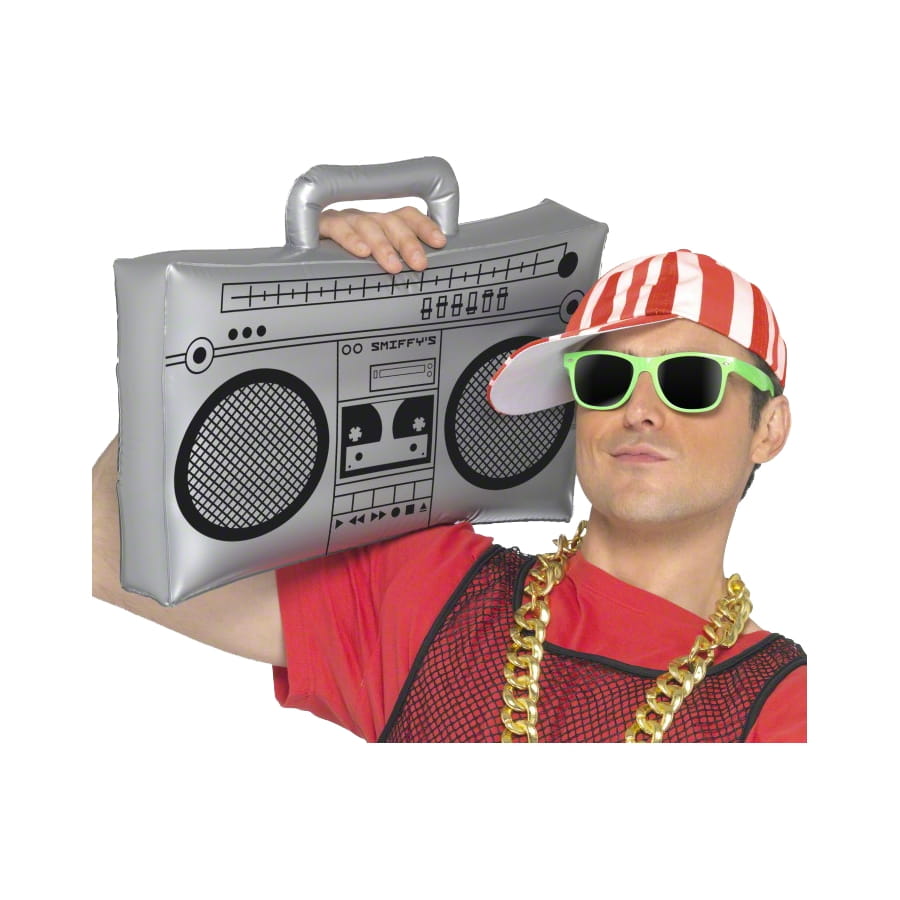 Ghetto Blaster gonflable de couleur grise. Avec ce poste radio style rétro, votre déguisement de rappeur ou d'adepte de la musique des années 80 sera parfaitement réussi!
