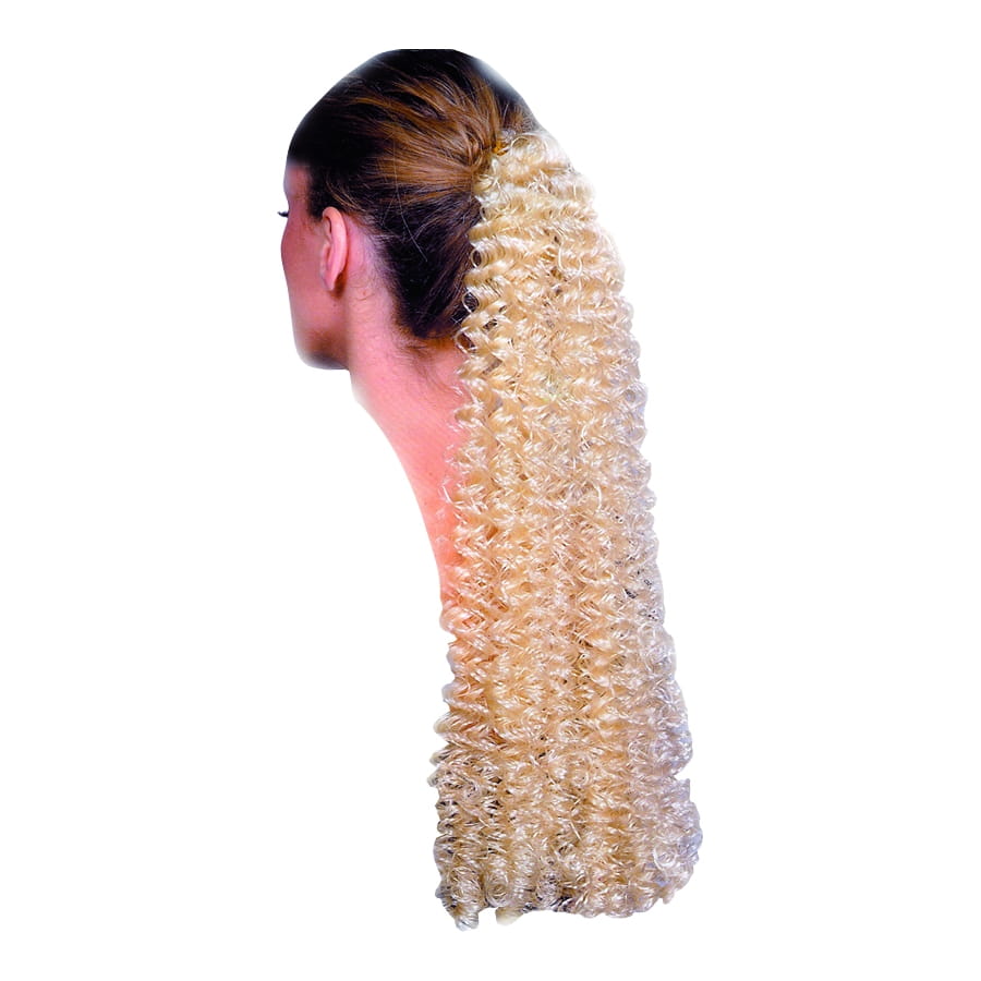 Cet accessoire de déguisement est parfait pour une soirée glamour, vous vous métamorphoserez durant une soirée. Ces rajouts sont blonds et longs. Frisée , elle se s'ajuste sur un chignon , elle tient grâce a un élastique.