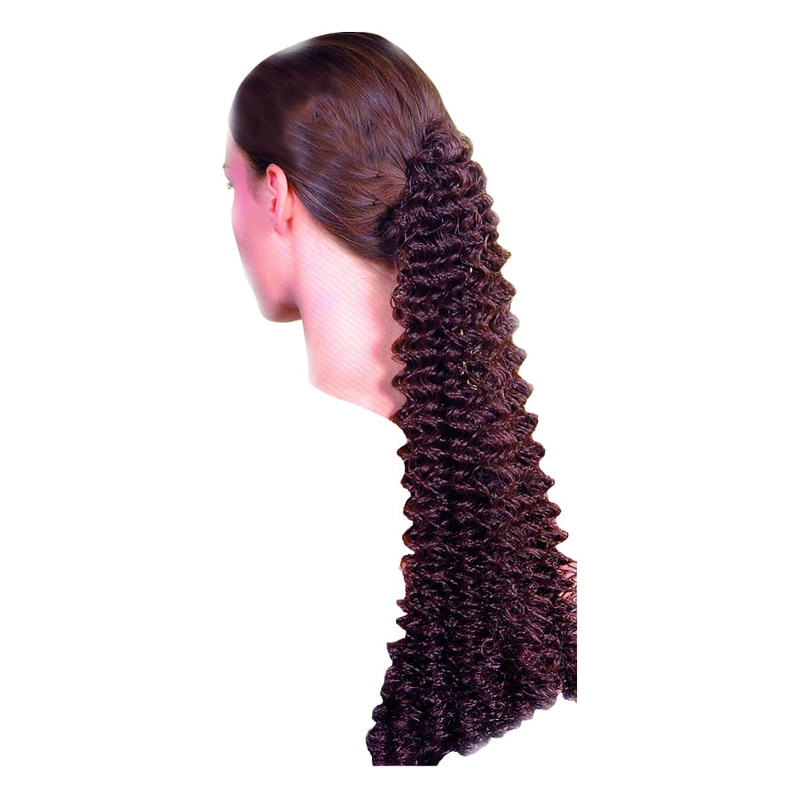 Cet accessoire est parfait si vous voulez vous métamorphoser en une soirée en une belle sirène ou pour vous donner une touche glamour. De couleur châtain, elle est longue et frisée, avec un élastique qui la maintient.