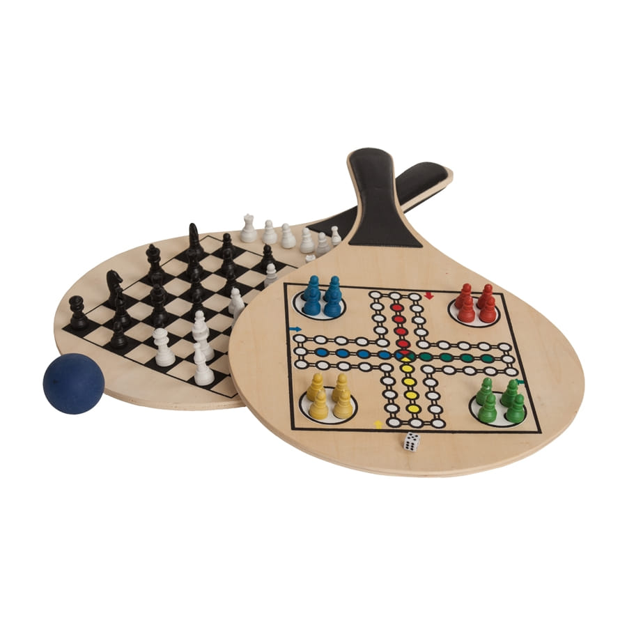 Passez d'une activité physique à une activité cérébrale en deux temps trois mouvements ! L'article raquettes de plage jeu de société est une véritable innovation. Il met à votre disposition deux raquettes de couleur beige, une balle et des petits pions. Un jeu de société est imprimé sur chaque raquette. Il existe six modèles de jeux possibles, mais celui que vous recevrez dépendra du stock disponible.