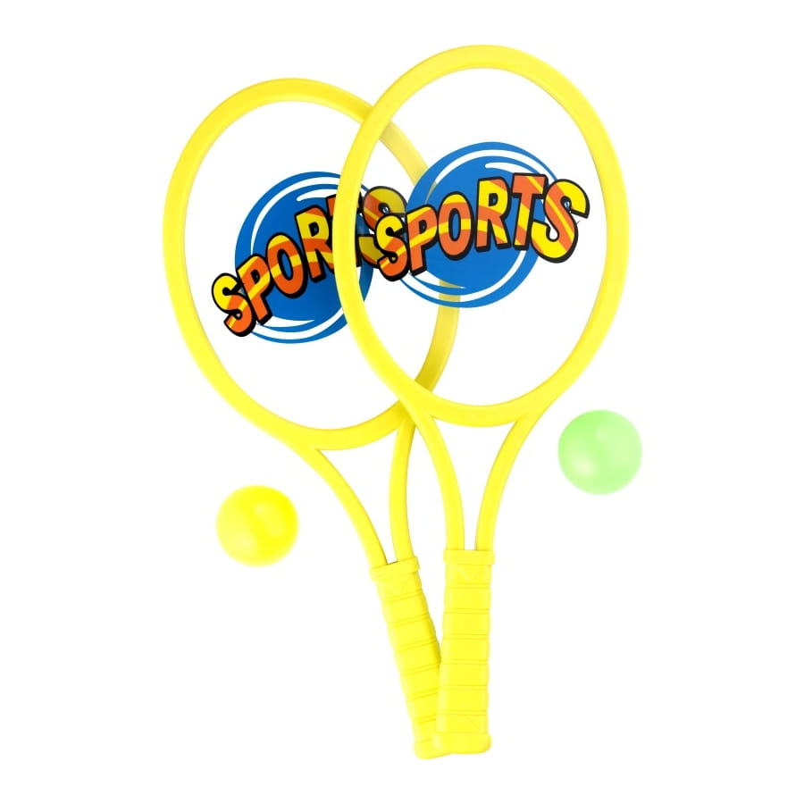 Vous pourrez vous en servir de cette paire de raquette pour passer un bon moment avec votre enfant. Ou encore vous pouvez l'offrir a un enfant pour son anniversaire. Cette paire de raquette est jaune, au milieu il est transparent avec écrit dessus sports. Il y aussi deux balles de couleur vert et jaune.