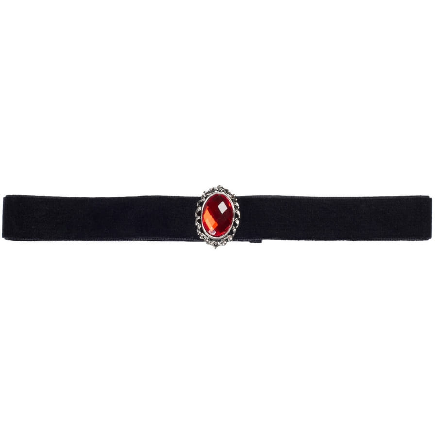 Le ras de cou noir avec pierre rouge centrale est un bijou destiné aux femmes.