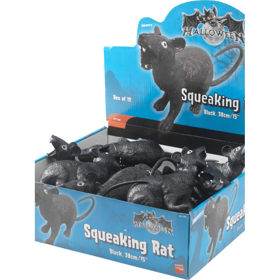 Rat en plastique de couleur noire. La taille de cet accessoire est de 38 centimètres. Vous pouvez l'utiliser comme décoration pour Halloween ou vous en servir pour jouer un mauvais tour à vos proches.