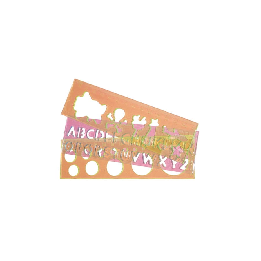 Règles normographes pour enfants de 15 cm. Assortiment de couleurs : rose et orange. Vous ne pourrez pas choisir la couleur pendant la commande. Vous recevrez l’une des couleurs présentées. Ces règles seront parfaites pour les petits écoliers. Ils apprendront à tracer des lettres, à tracer des cercles et à dessiner des personnages avec.