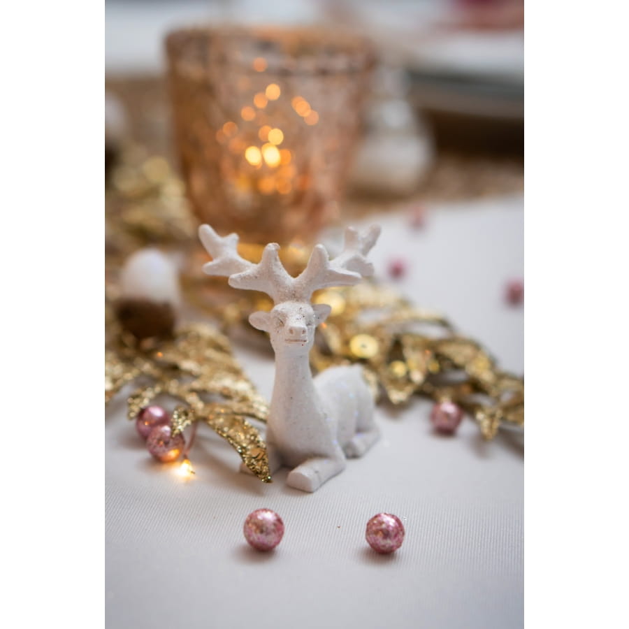 Apportez de la douceur et de la fraîcheur à votre déco de Noël, avec le renne blanc pailleté décoratif de 6,6 cm.