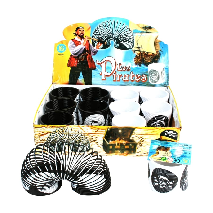 Faites plaisir à votre petit corsaire en lui offrant ce jouet ressort sur le thème du pirate, de couleur noire et blanche. Chaque ressort est orné d'une image de crâne pirate. Les enfants pourront s'amuser à lancer les ressorts un peu partout pour faire des mouvements rigolos. Avec l'habitude, cela pourrait devenir un art. Ces jouets sont même capable de descendre les escaliers ! Il est à noter que vous n'aurez pas le choix du modèle ou de la couleur lors de la commande de cet article (vous recevez soit le blanc, soit le noir).