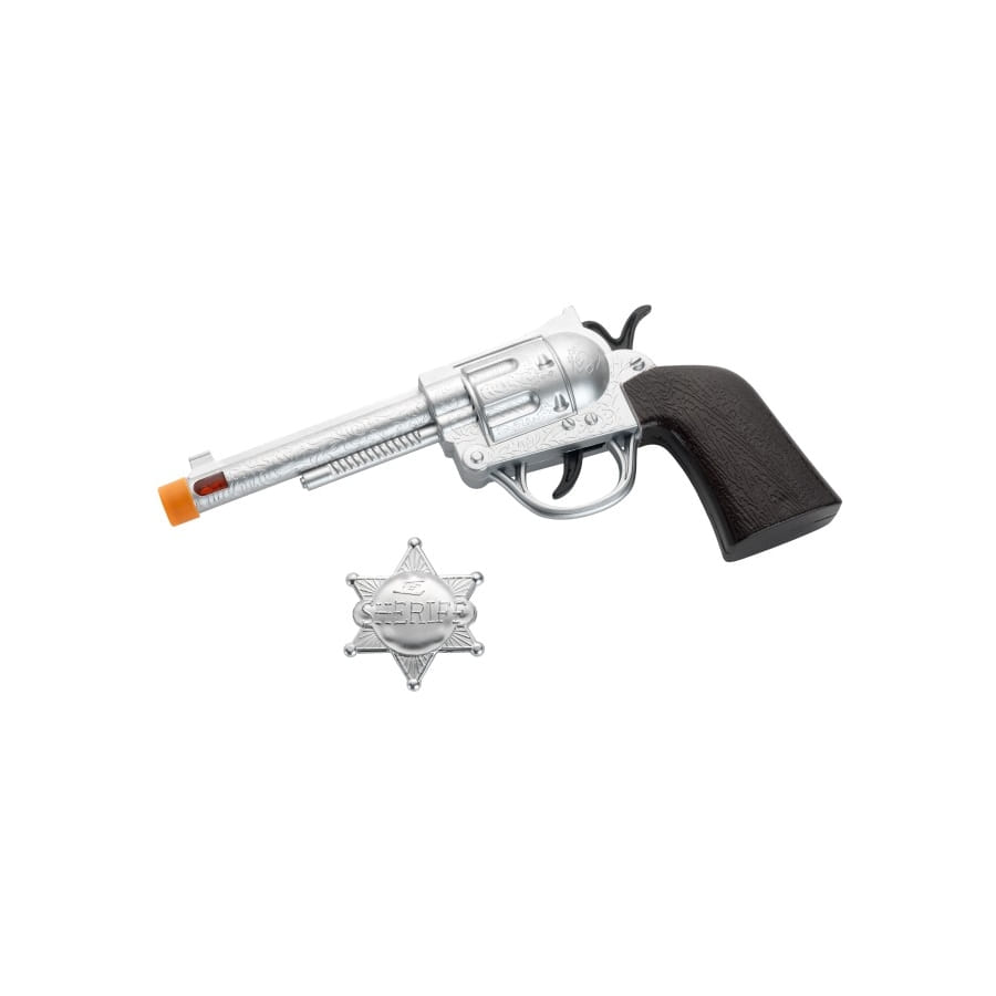 Le nouveau shérif ne pourra pas faire régner la justice sans ses accessoires. Votre petit garçon devra s'équiper de cet ensemble révolver et badge de cowboy pour atteindre ses objectifs. Le jouet revolver est de couleur argentée. Seule la crosse et la détente sont en noir. Quant au badge, il s'agit d'une étoile argentée sur laquelle vous trouverez l'inscription "shérif".