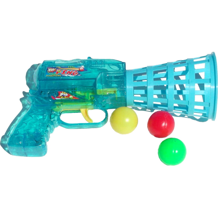 Pistoler lance-balles de couleur bleue, avec 3 balles rouge, verte et jaune comprises. Au moment de passer la commande, il vous sera impossible de choisir ni le modèle ni la couleur des accessoires du set. Il sera livré comme présenté. C'est un jouet idéal à offrir aux enfants.