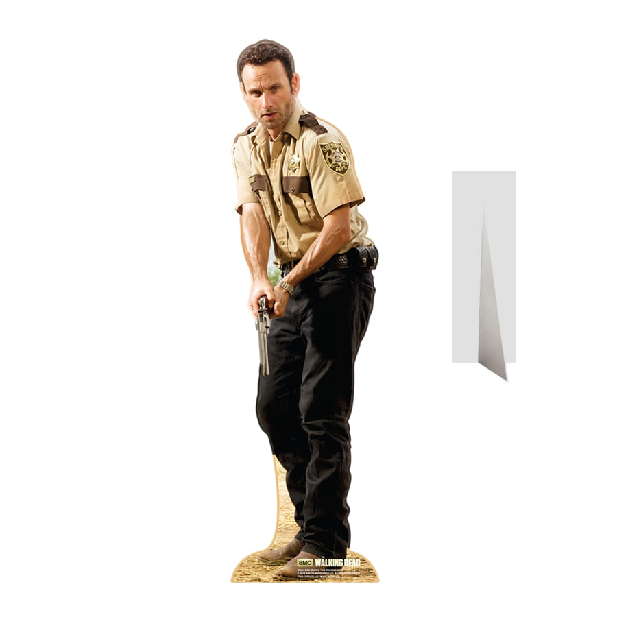 Découvrez ce Rick de walking dead en carton taille réelle !! Fascinant, non ? Rick Grimes est le personnage principal de la série télévisée The Walking Dead, le héros de l'histoire. Il est interprété par Andrew Lincoln. Cette grande figurine représente Rick grandeur nature dans sa tenue de shérif beige, en train de tenir son pistolet. Cet article de décoration mesure 178 cm de haut, sous licence officielle Walking dead. Vous pourrez l'utiliser à l'occasion d'une soirée Halloween, bien sûr, pour qu'il puisse chasser tous les rôdeurs, mais aussi lors d'une soirée Ciné ou Star, par exemple.