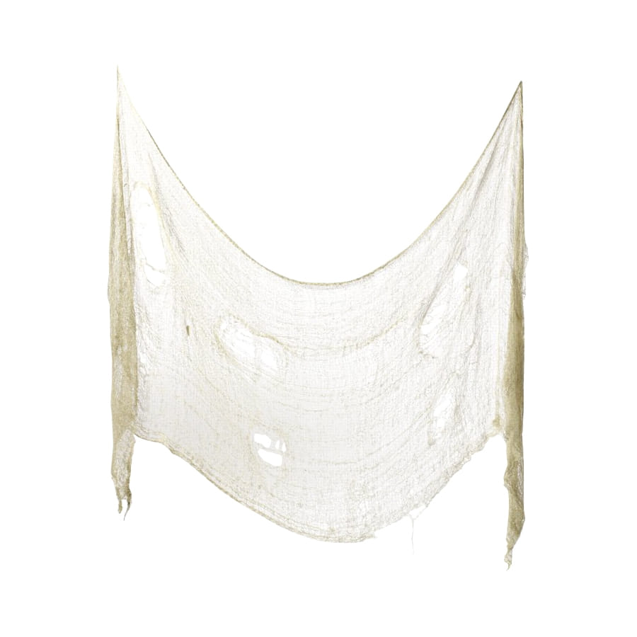 Rideau d'épouvante troué de couleur crème. Cet accessoire mesure 75 centimètres de longueur sur une largeur de 3 mètres. C'est un moyen idéal de compléter sa décoration d'Halloween ou pour une soirée basée sur le thème de la magie et de la sorcellerie.