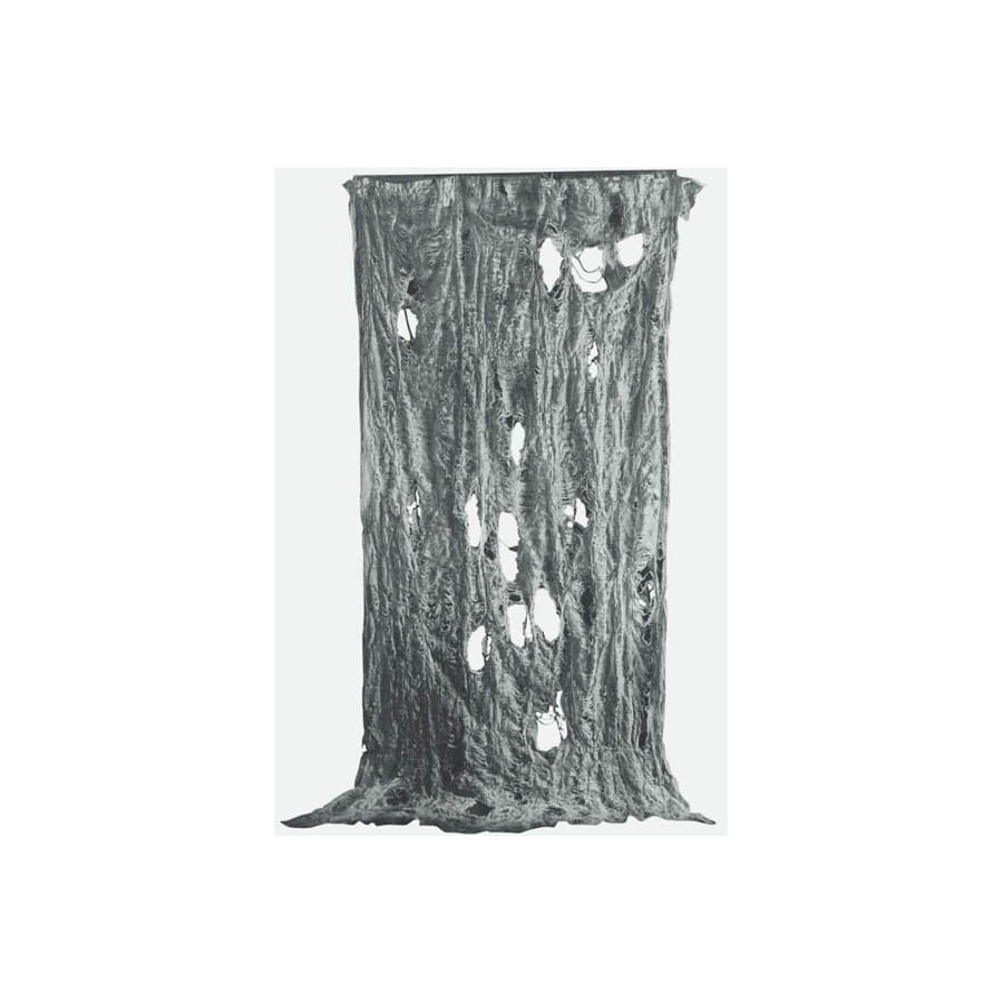 Préférez-vous l'antre d'une tombe ou celle d'une maison hantée ? Pourquoi pas les deux ? Grâce à ce rideau de porte décoratif, vous pourrez déjà refléter l'ambiance de votre soirée d'Halloween. L'horreur et l'épouvante seront au rendez-vous ! Le rideau est de couleur grise et mesure 250 x 120 cm. Il affiche une apparence usée par le temps, avec quelques trous et déchirures un peu partout. Ce sera comme dans un scénario de film d'horreur.