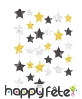 Les guirlandes d'étoiles dorées tombent vers le bas, créant une pluie scintillante qui ajoute une touche de rêve à l'atmosphère. Elles captent la lumière et l'envoient danser à travers la pièce, créant une ambiance de fête pétillante.