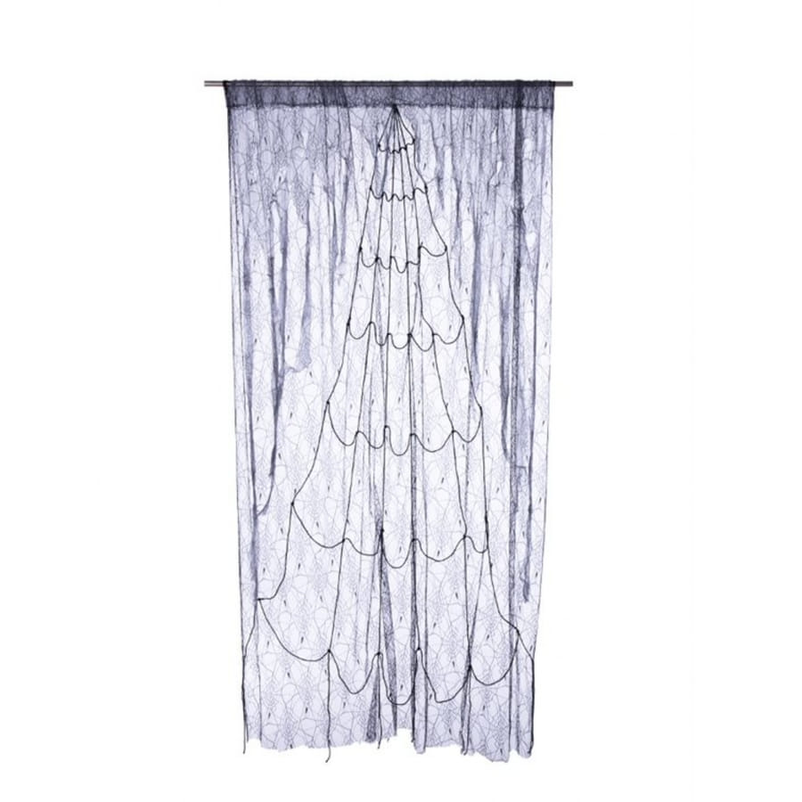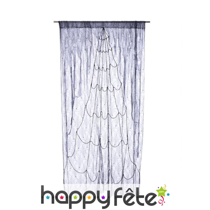 Le rideau de toile d'araignée noire et grise mesure environ 220 x 160 cm.
